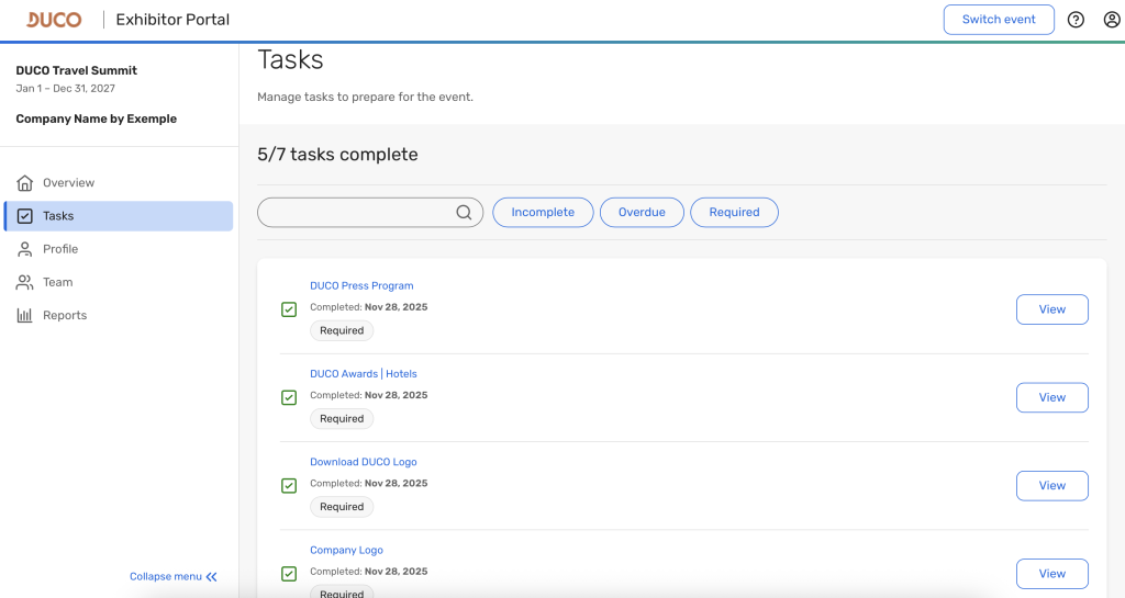 - They will receive an invitation to access the portal and collaborate on your company’s presence at DUCO.