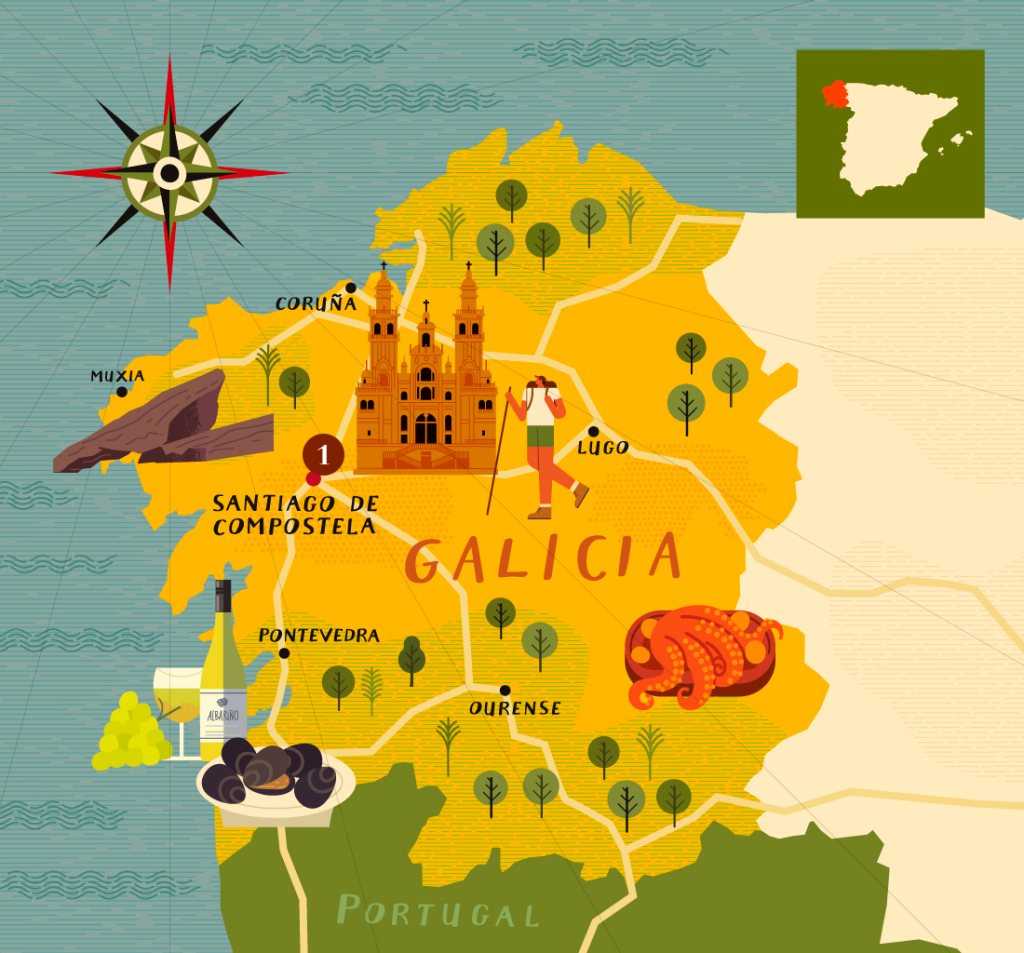 Galicia, located in the northwest of Spain, is a land of lush landscapes, dramatic coastlines, and rich cultural heritage. Known for its stunning Rías Baixas and as the final destination of the world-renowned Camino de Santiago, this region blends natural beauty with deep-rooted traditions. Pilgrims from across the globe have journeyed to Santiago de Compostela, a city known for its medieval architecture, including the awe-inspiring Cathedral of Santiago, a UNESCO World Heritage site.