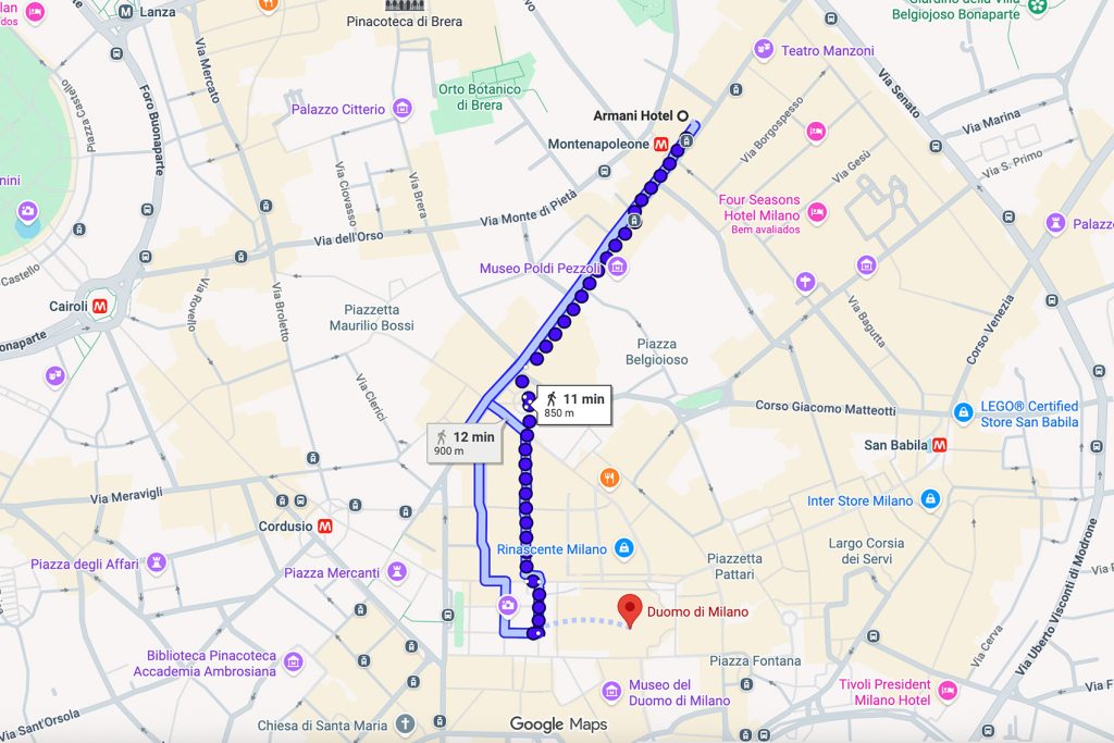 Return from Portrait Milano to Armani Hotel Milano: