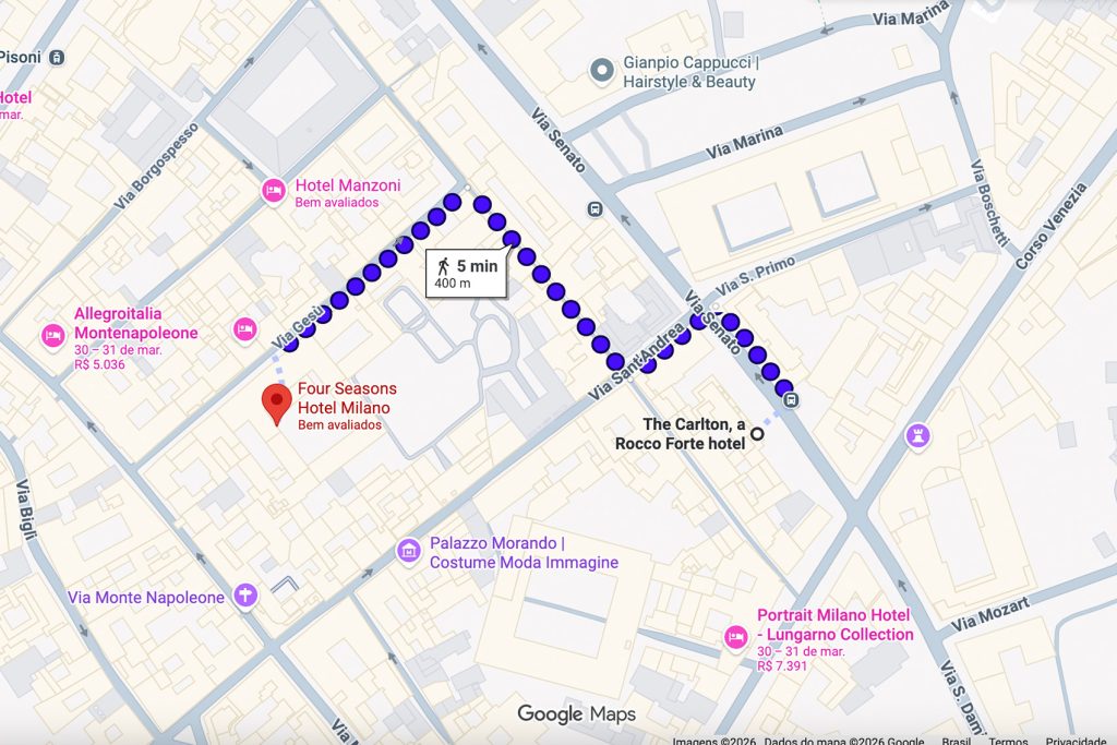 2. From Hotel Principe di Savoia: the venue is within walking distance.