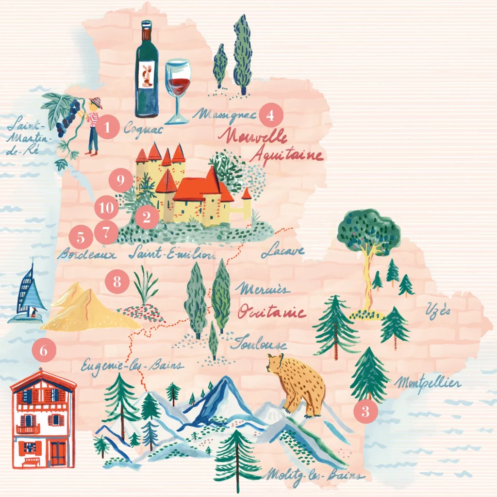 With the Atlantic on one side, the Mediterranean on the other, and anchoring Spain to mainland Europe, the long stretch of Southwestern France holds plenty to discover. The immense Nouvelle-Aquitaine and Occitanie regions are a must for nature enthusiasts. Here, the snowy caps and endless hiking trails of the Pyrenees, signature curves of “Tour de France” cycling routes, and miles and miles of pristine coastline invite one and all to slow down and enjoy everyday life. In a land of countless impeccable wines, Bordeaux and its expansive surrounding vineyards are indeed heaven for oenophiles, though there is plenty of room on the table for the many excellent biodynamic wines in Occitanie or sparkling wines from Limoux. With top-tier libations comes equally ranked gastronomy: truffles, Roquefort cheese, foie gras, and caviar, to name a few of the area’s delicacies. And if you like history, you’ll love these regions laced with UNESCO towns, immaculate topiary gardens, and the footprints of Charlemagne, Henry IV, and Maurice Ravel. From Bergerac to Toulouse, Lourdes to Montpellier, Southwestern France is ready to fill your cup, get your heart pumping, and soothe your soul with a spectacular endless horizon—from one coast to the other.